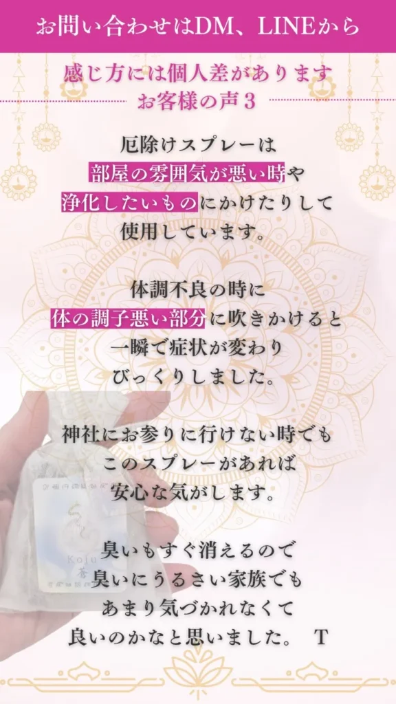 シュッとひと吹きするだけで、空気や感覚が変わるのを感じていただけると思います。